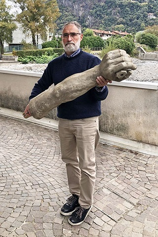 Ercole, due metri e dieci di legno scolpito, è un corpo che resiste. Realizzato da Giovanni Maria Franzosini, non è monumento ma relitto vitale, sopravvissuto al tempo più che accolto dalla storia. Oggi, al Civico Museo Parisi‑Valle, non lo si celebra: lo si interroga. La sua fatica diventa energia in transito, campo d’azione, spazio di scambio. Attorno a lui si forma una comunità provvisoria di artisti che trasformano la cura in conoscenza e il fare in relazione. Ercole non è più immagine, ma soglia: passaggio tra passato e presente, tra mano e materia, tra fatica e forma.